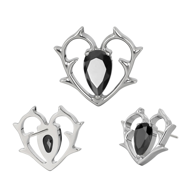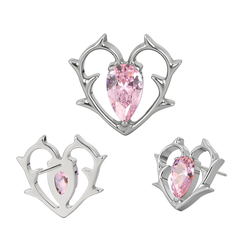 Titanium Push In Thorny Heart With Pear CZ Center Threadless Top