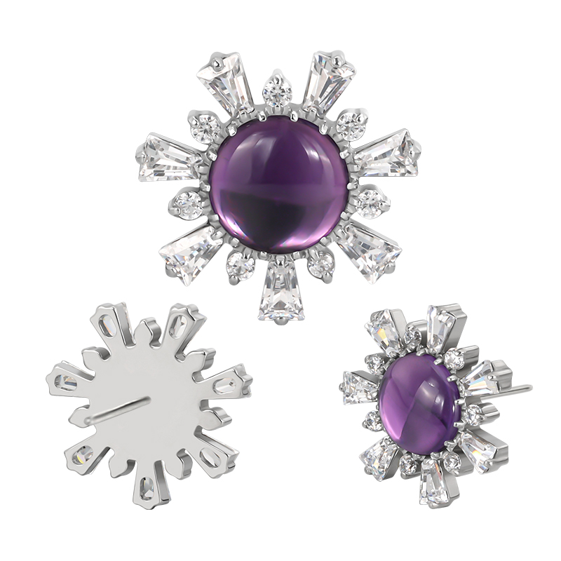 Titanium Push In Sun With Natural Stone Center Threadless Top