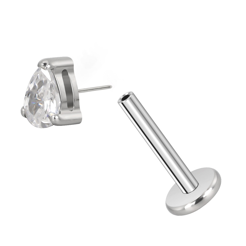Titanium Push In Prong Set Pear CZ Center Threadless Top