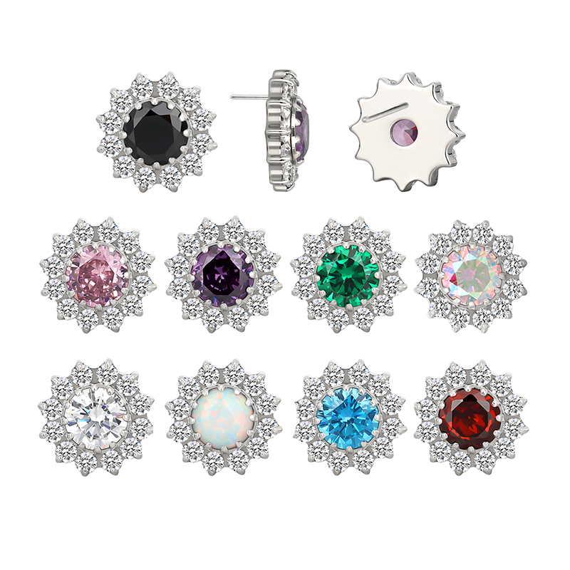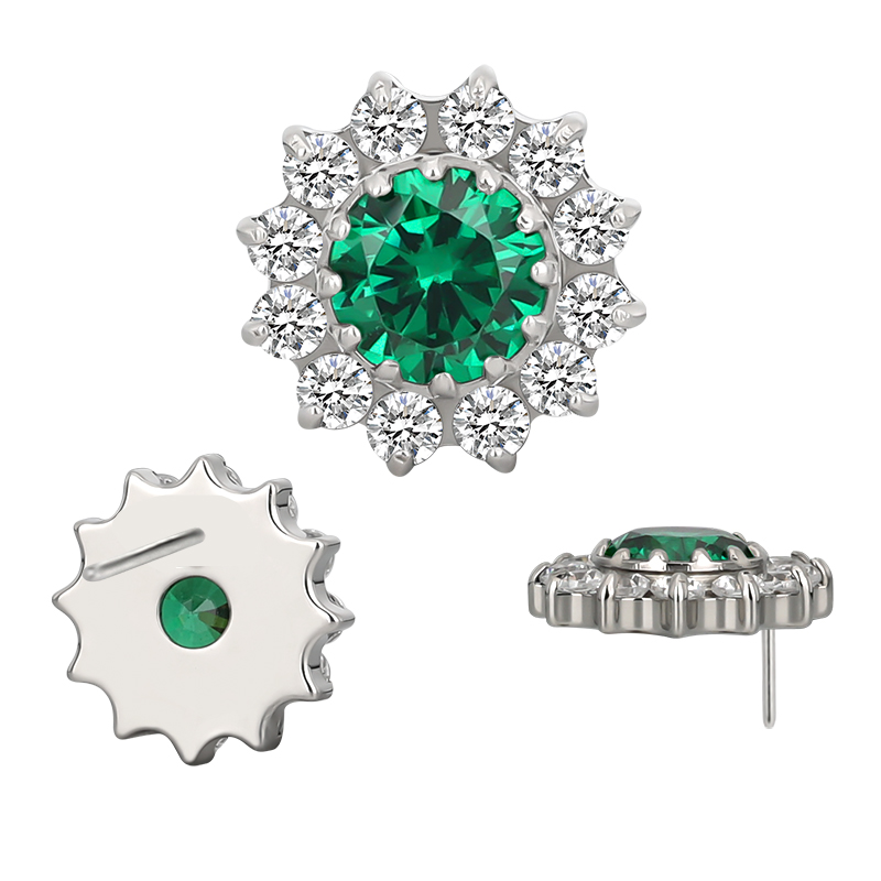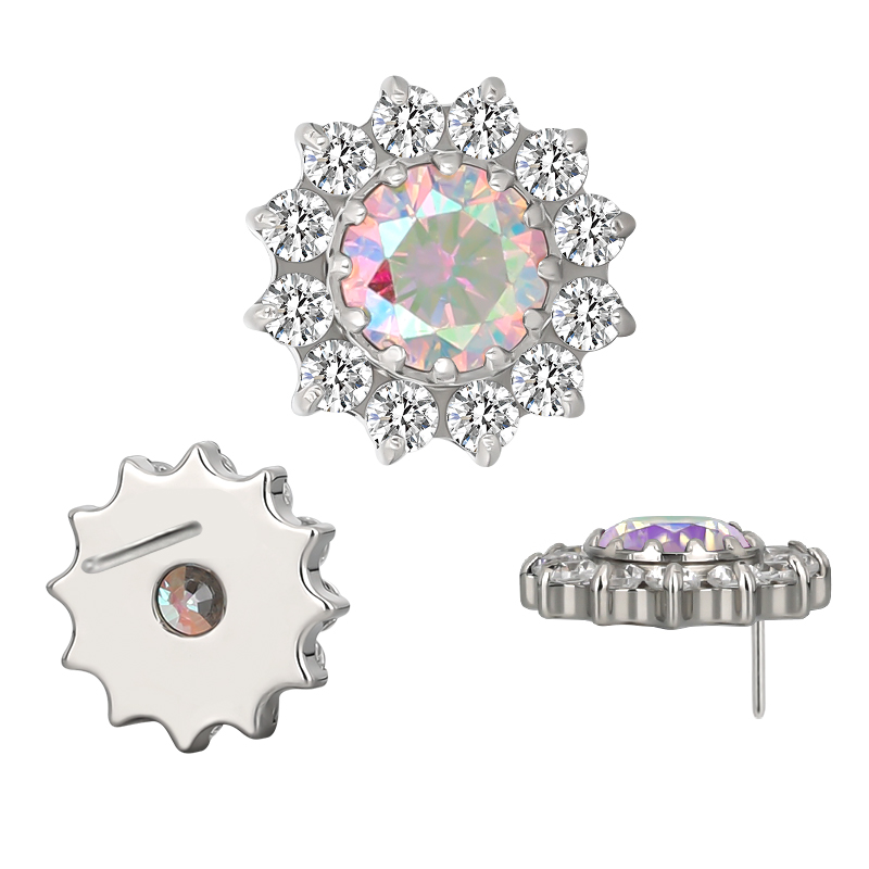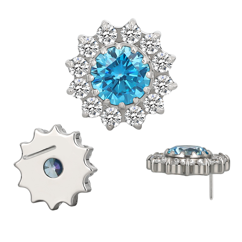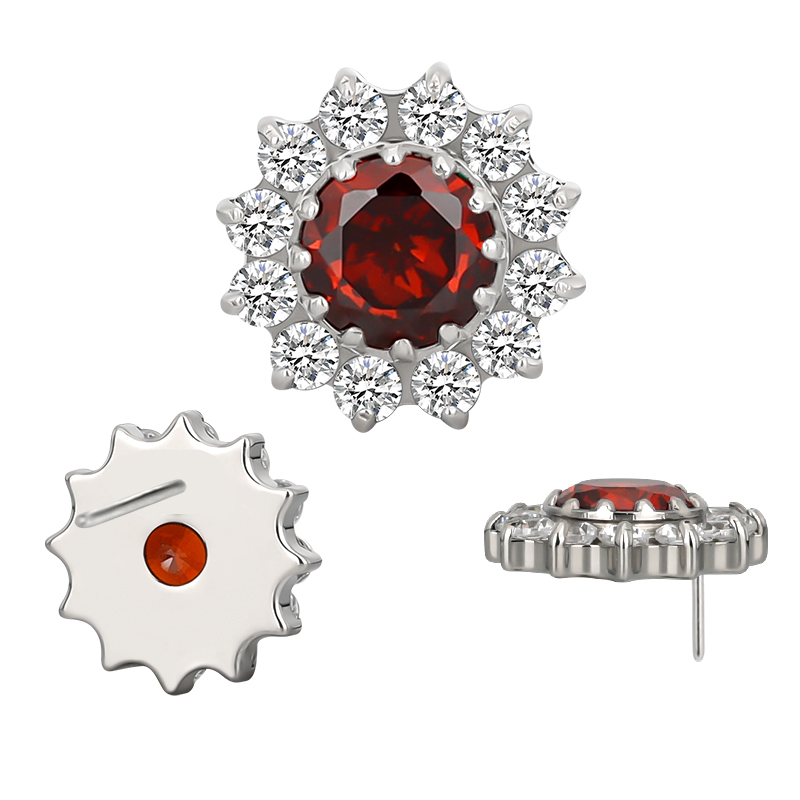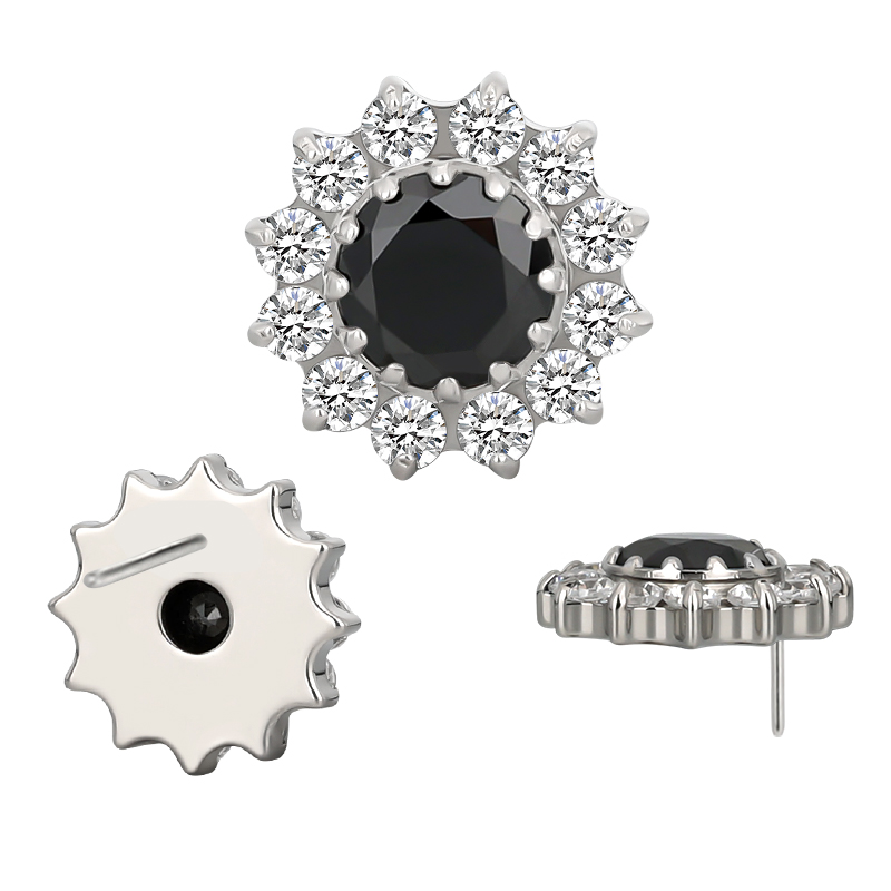 Titanium Push In Bezel Set CZ Flower Threadless Top