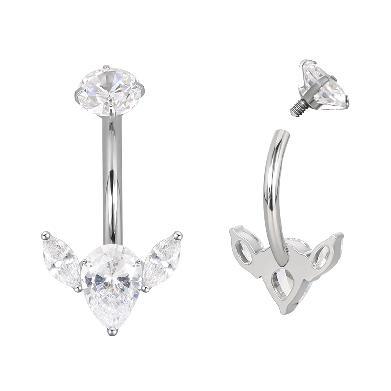 Titanium Bezel Set CZ Top With 2 Marquise CZ and Pear CZ Center Flower Belly Button Ring