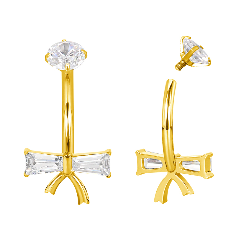 Titanium Bezel Set CZ Top With CZ Bowknot Belly Button Ring