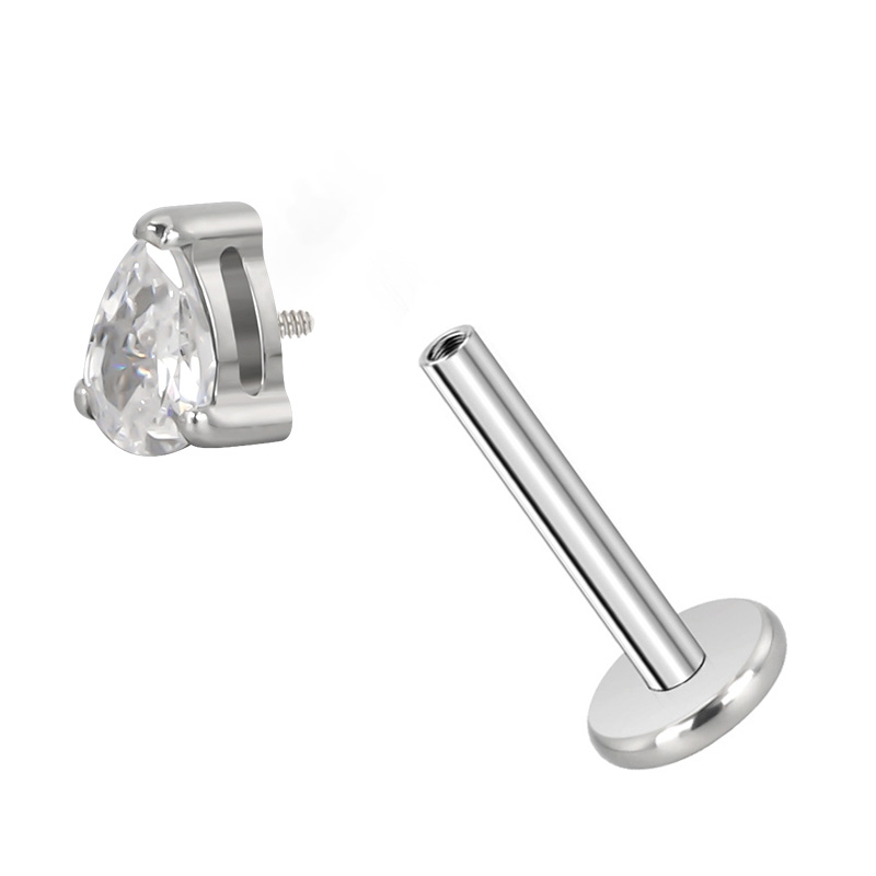 Titanium Prong Set Pear CZ Interanlly Threaded Top