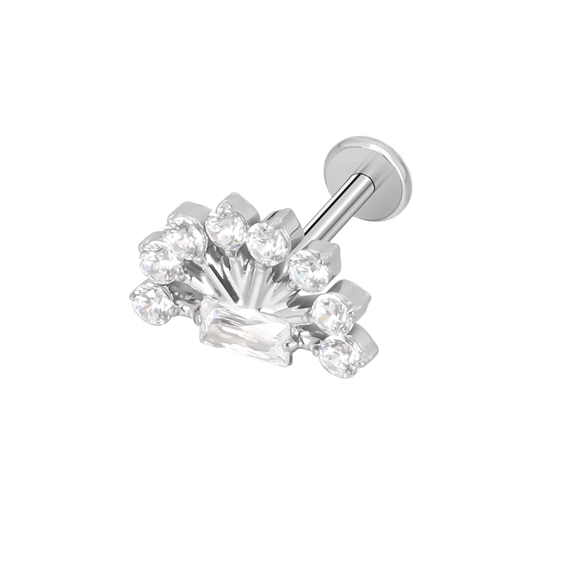 Titanium CZ Flower With Rectangle CZ Center Internally Threaded Top