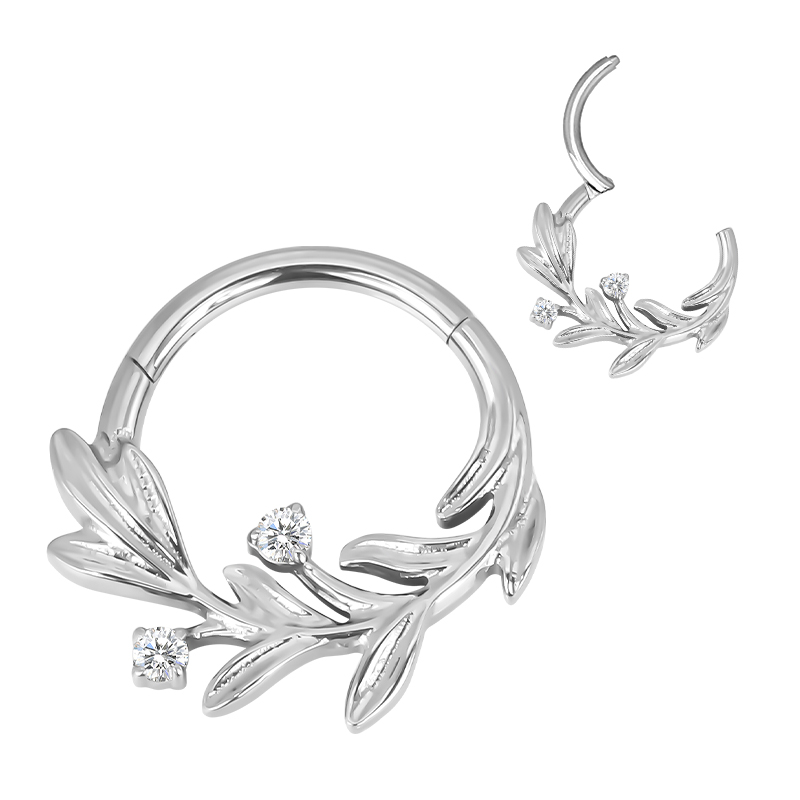 Titanium Hinged Segment Hoop With 5 Pear CZ Pave Face