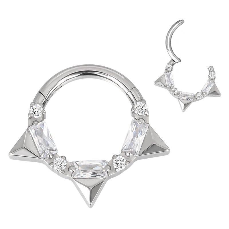 Titanium 3 3D Triangle Hinged Segment Ring With CZ Paved Faced