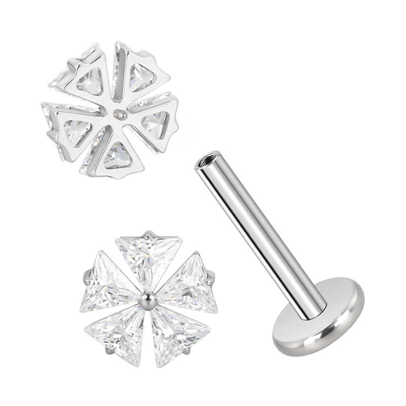 Titanium 5 Triangle CZ Flower Internally Threaded Top
