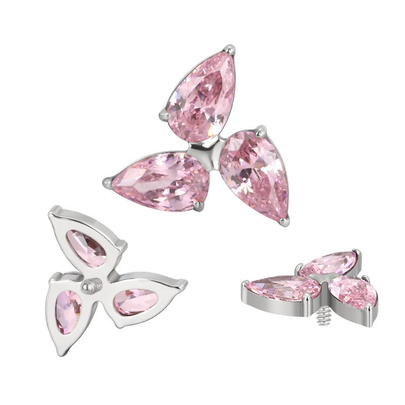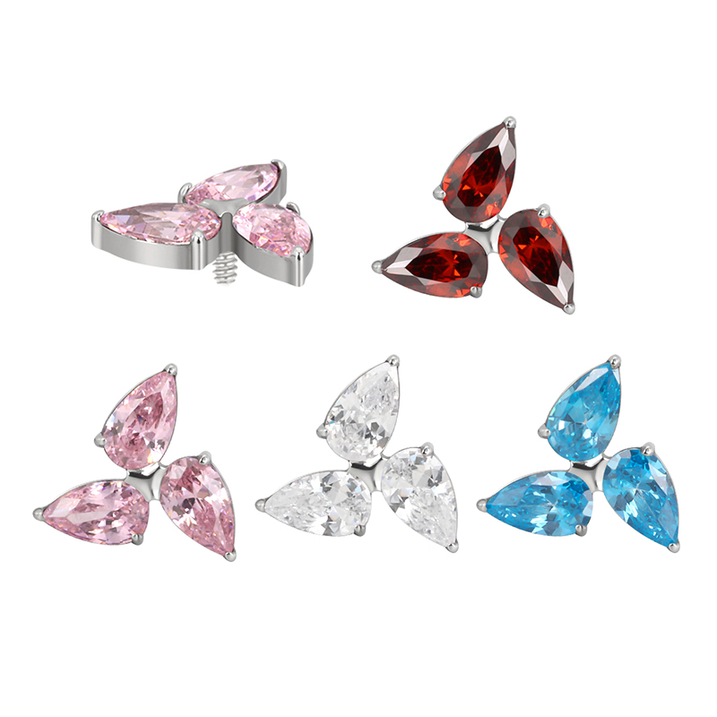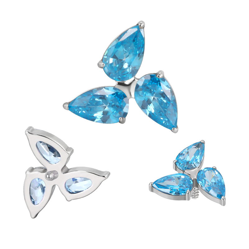 Titanium 3 Pear CZ Shuriken Interanlly Threaded Top