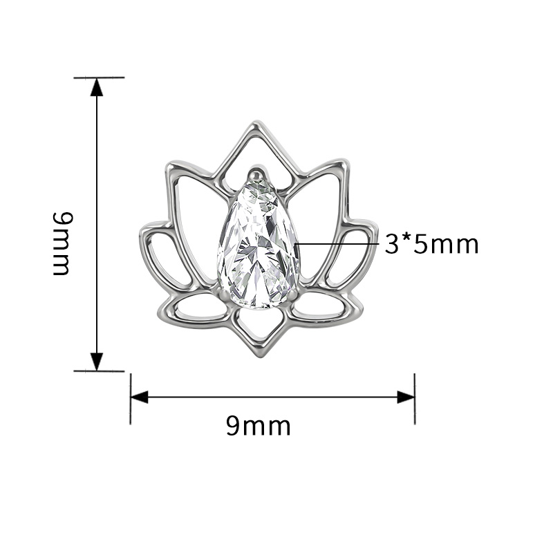 Titanium Carved Lotus With Pear CZ Center Interanlly Threaded Top