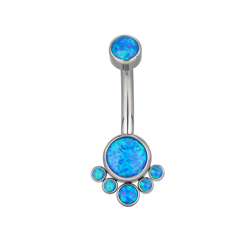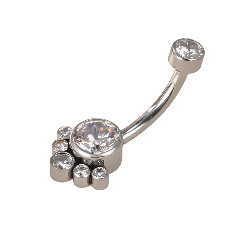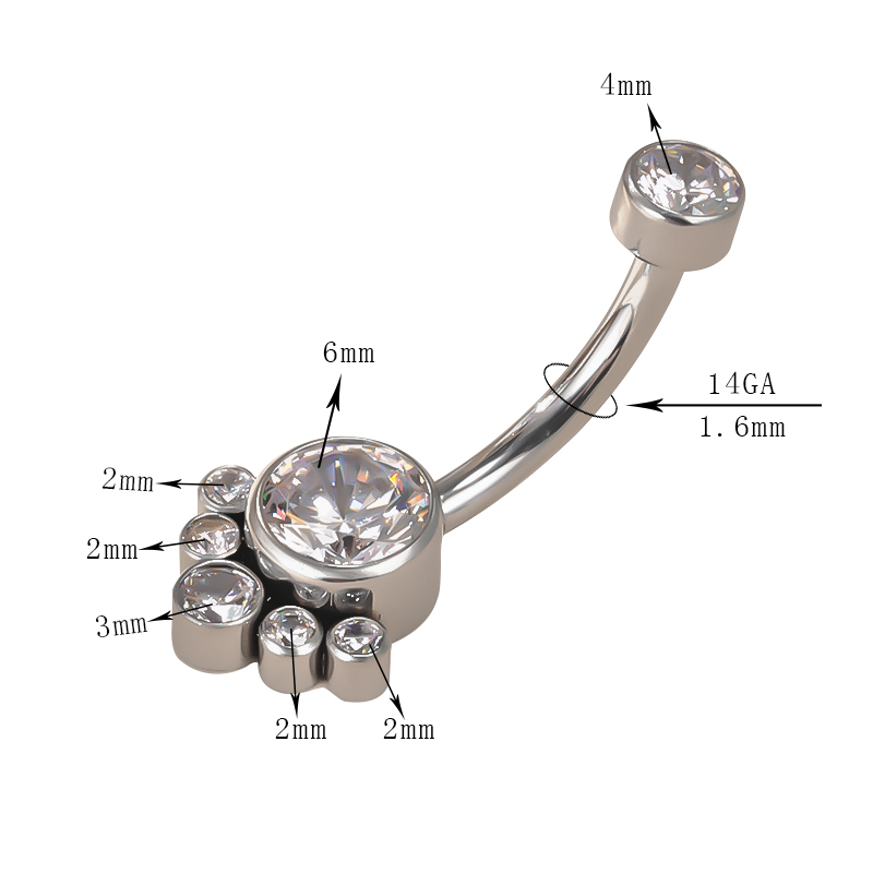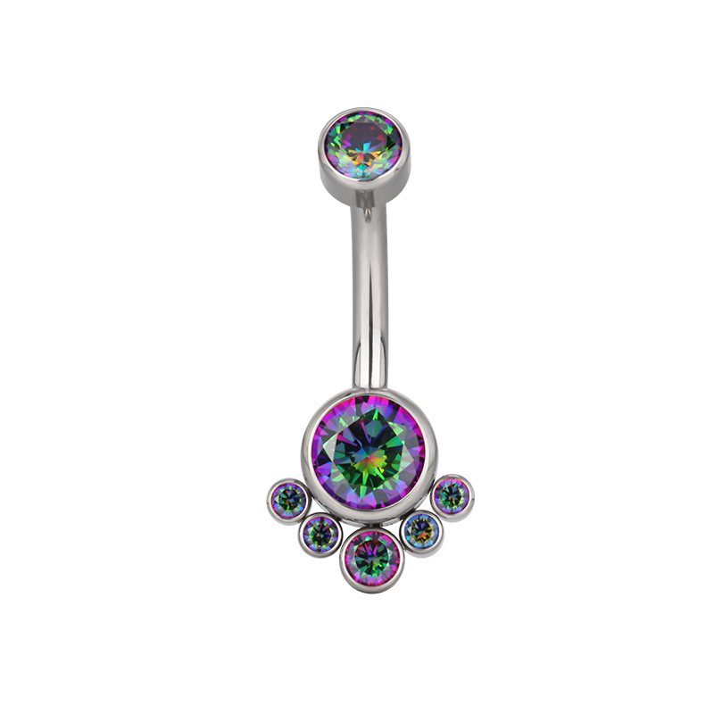 Bezel Set 6-CZ Stone Clearuster Internally Threaded Navel Curves