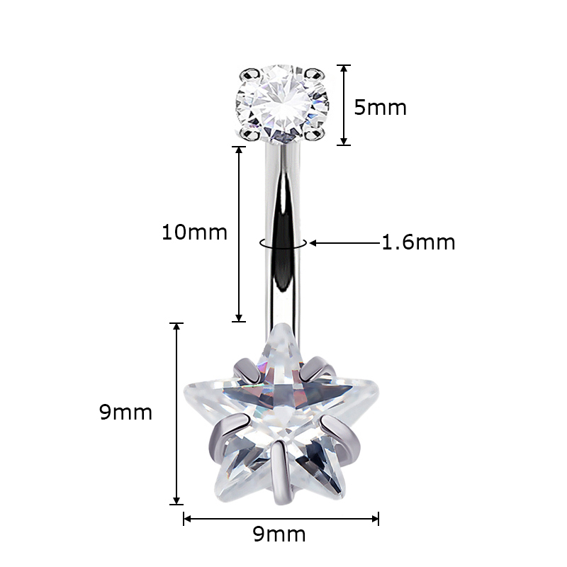ASTM F-136 Double Star CZ Prong Set Belly Button Navel Rings
