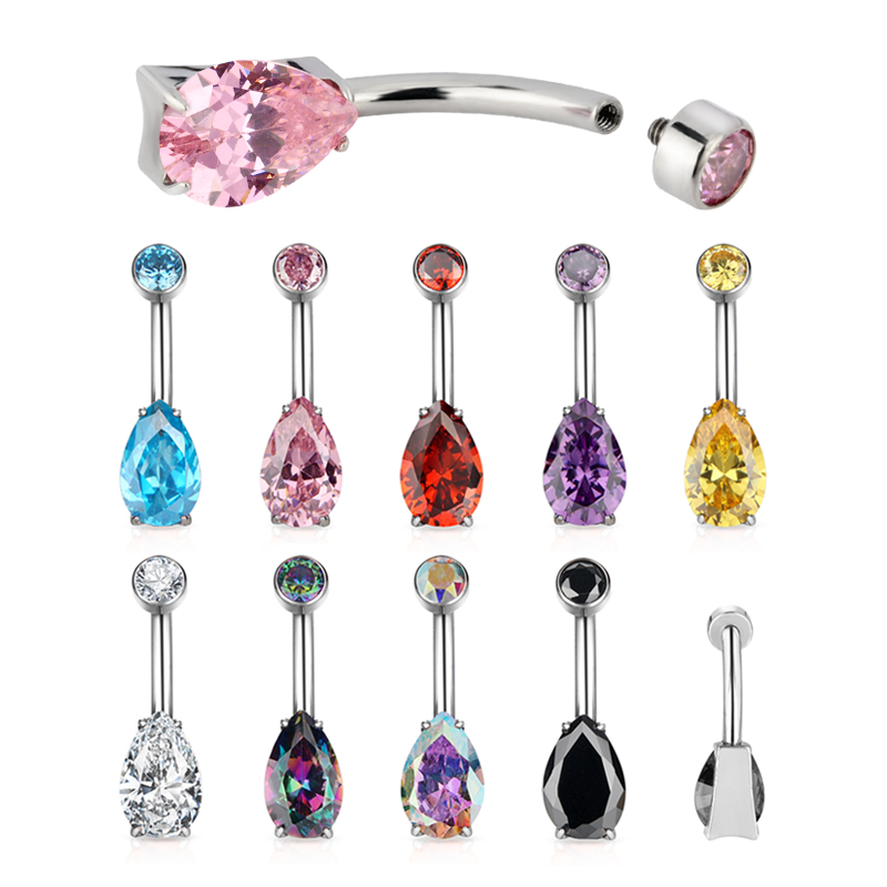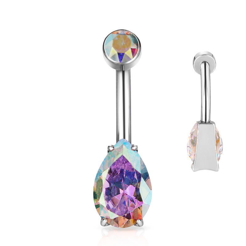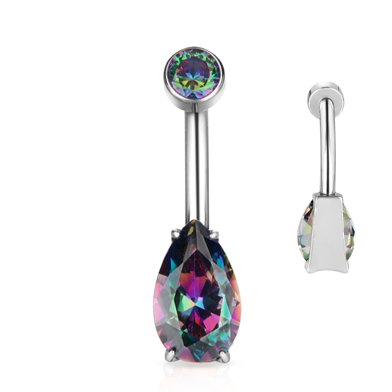 Titanium Bezel Set CZ Top and Pear CZ (6x8mm) Stone Back Belly Button Rings