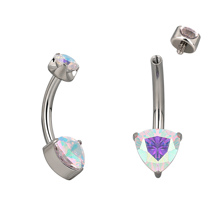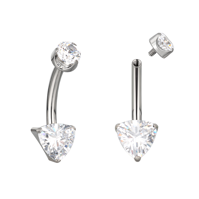 Titanium Prong Set Triangle Cut Zircon Belly Buttone Ring