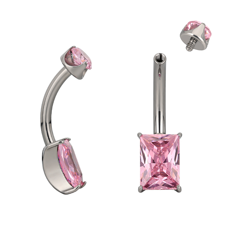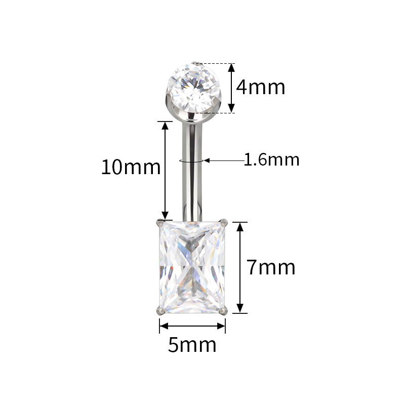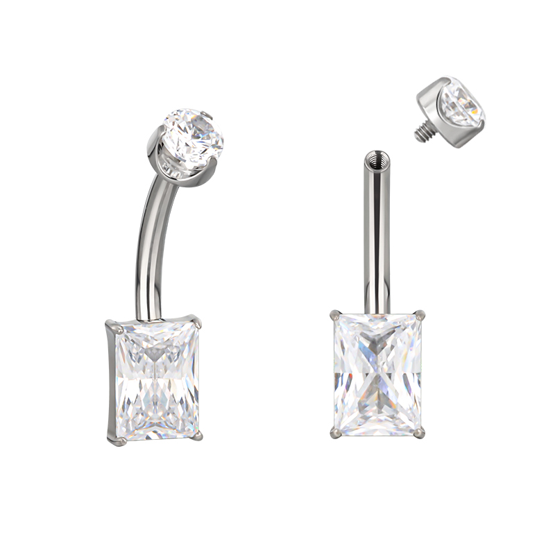 Titanium Prong Set Rectangle Cut Zircon Belly Buttone Ring