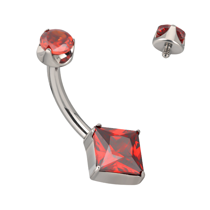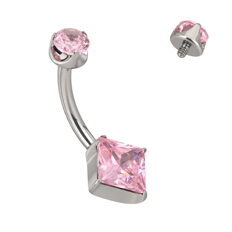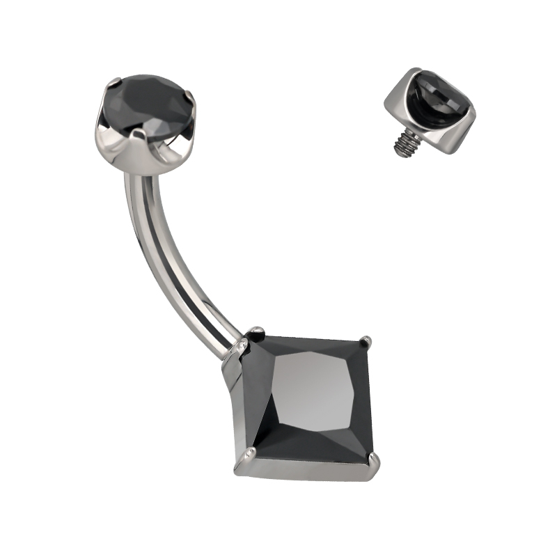 Titanium Prong Set Square Zircon Belly Buttone Ring