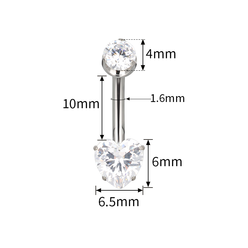 Titanium Prong Set Heart Zircon Belly Buttone Ring