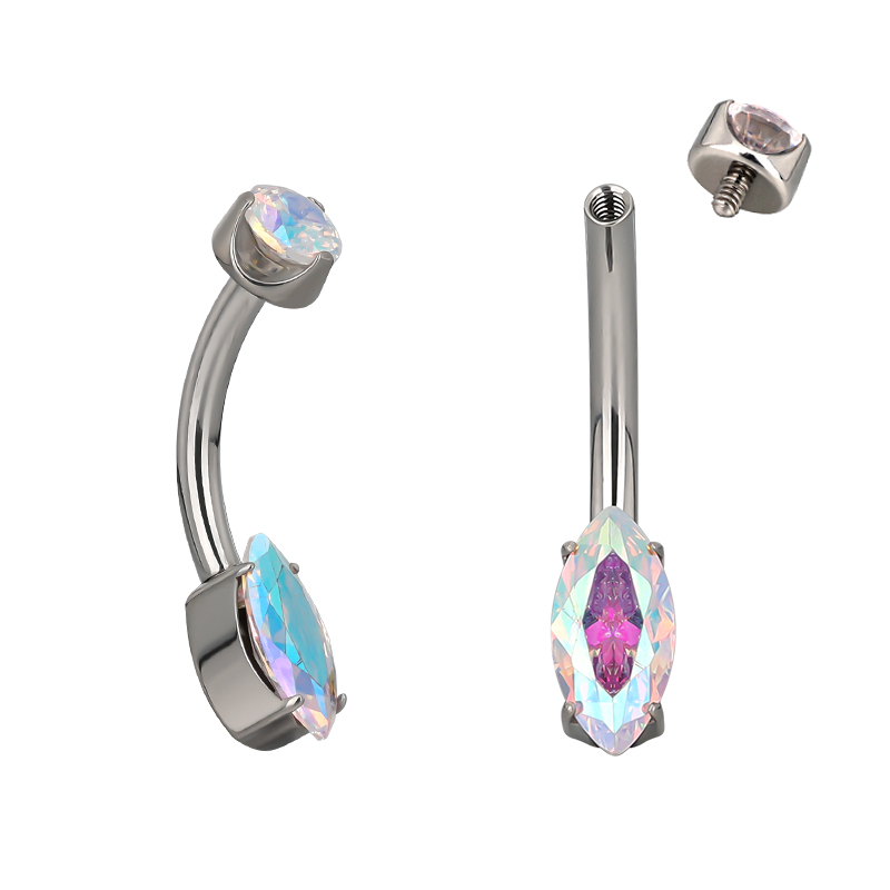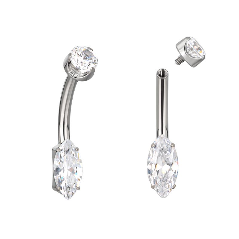 Titanium Prong Set Marquise Zircon Belly Buttone Ring