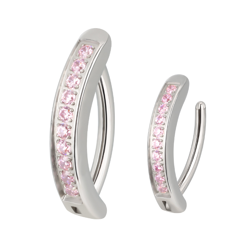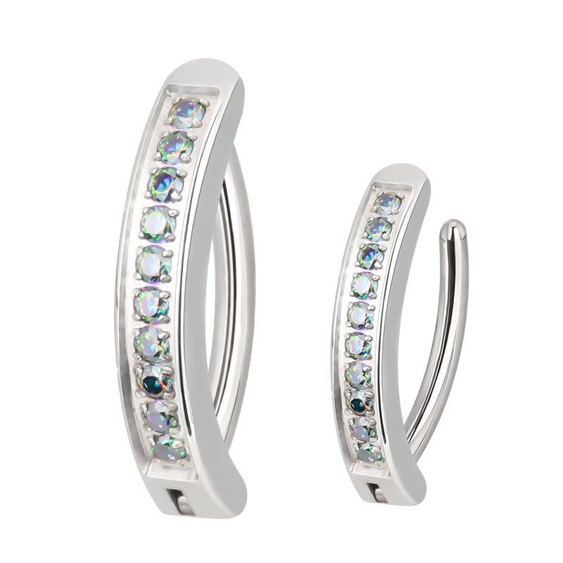 Titanium CNC Set CZ Paved Belly Button Navel Ring