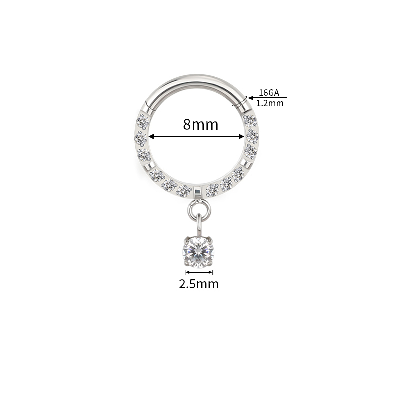 Titanium CZ Paved Face Segment Ring With Prong Set CZ Dangle
