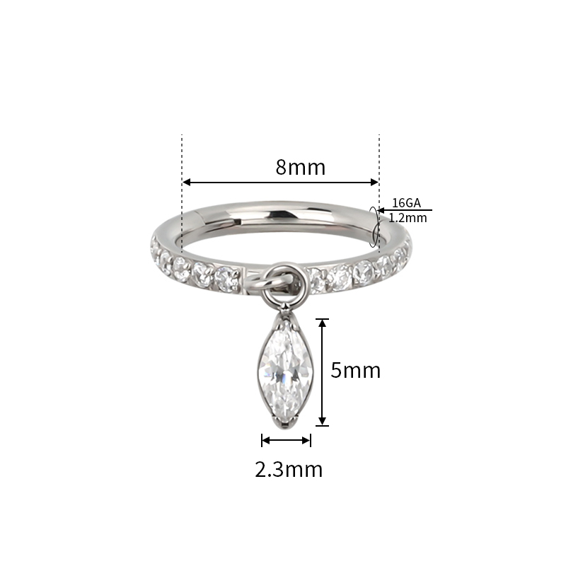 Titanium CZ Paved Side Segment Ring With Marquise CZ Dangle